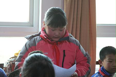 長期患病的受助學(xué)生小雪婷向改革局愛心團(tuán)隊表達(dá)感激之情