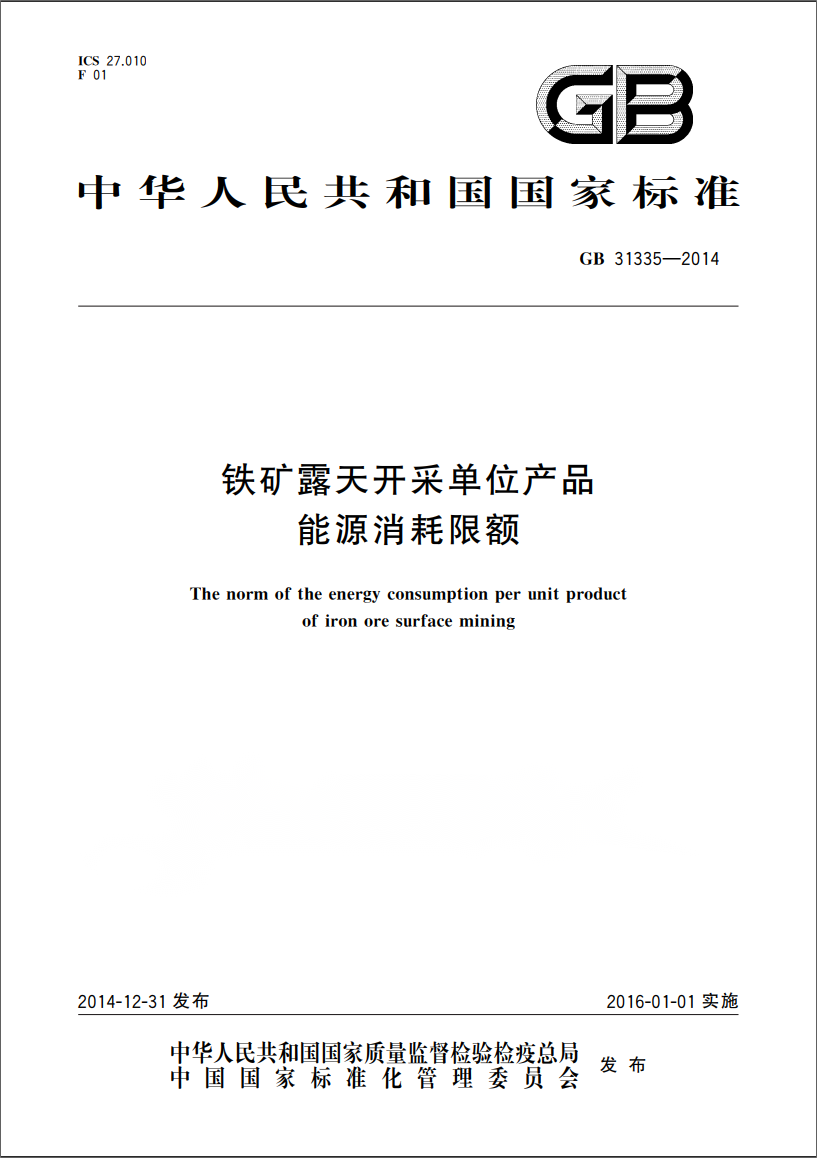 本標(biāo)準(zhǔn)第一起草單位:中國國際工程咨詢有限公司。 本標(biāo)準(zhǔn)主要起草人:楊東民、朱黎陽、張英健、閆樹芳等。 本標(biāo)準(zhǔn)由國家發(fā)展和改革委員會資源節(jié)約和環(huán)境保護(hù)司提出,由全國能源基礎(chǔ)與管理標(biāo)準(zhǔn)化技術(shù)委員會(SAC/TC20)歸口。 本標(biāo)準(zhǔn)規(guī)定了鐵礦露天開采單位產(chǎn)品能源消耗(以下簡稱能耗)限額的技術(shù)要求、統(tǒng)計(jì)范圍和計(jì)算方法、節(jié)能管理與措施。 本標(biāo)準(zhǔn)適用于鐵礦露天開采單位產(chǎn)品能耗的計(jì)算、考核以及對新建項(xiàng)目的能耗控制。 | |||||