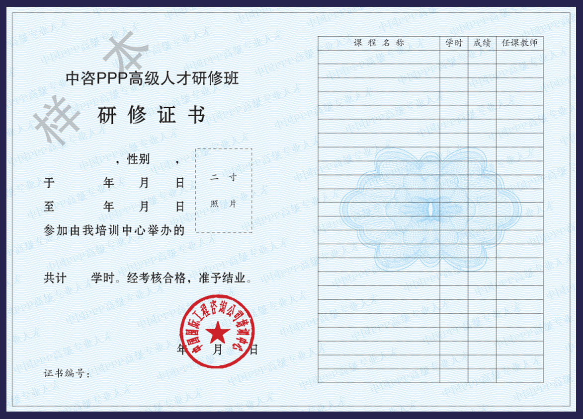 A選項:7800元/人,選擇研修班一單元、二單元、三單元中的其中一個單元的學習,含授課費、講義費、場地費、文具費、證書費等,以及舉辦主體沙龍、開展項目推介或專家點評等各項支出。食宿統一安排,費用自理。 B選項:16800元/人,組團報名三人以上(含)9.5折、7人以上(含)8.5折。含三個單元12天3晚的授課費、講義費、場地費、文具費、證書費等,以及舉辦主體沙龍、開展項目推介及專家點評等各項支出。食宿統一安排,費用自理。 注:為了保證每位學員達到預期研修目的,組委會特別推出免費復訓政策,即凡報名B選項的參訓學員,截止2018年9月30日前,可免費參加《中咨PPP高級人才研修班》課程復訓。復訓期間的食宿統一安排,費用自理。 研修期間,學員將通過考勤、案例展示、沙龍活動及參與研討等方式完成學業。按要求完成學業的學員統一頒發“中咨PPP高級人才研修班”參訓研修證書。主辦方將通過確保研修品質等多種措施,提升證書的社會認知度及品牌價值。參訓學員請在報道期間向會務組提供個人2寸近期證件彩色照片,用于辦理證書時使用。 參訓學員將獲得以下多重收益: 1、首次獲得主辦方隆重推出的PPP完整課程體系高強度集中培訓,系統掌握PPP相關知識和技能; 2、及時掌握PPP領域最新政策及相關資訊,及時掌握我國PPP領域權威專家對當前PPP熱點問題、未來走向的權威解讀; 3、加入中國國際工程咨詢公司傾心打造的全國PPP高端人才學習平臺,全面提升個人職業生涯層次; 4、加入“中咨PPP高級人才”專業學習研修網絡,持續獲得各類培訓研討后續資源信息; 5、利用中咨公司專家網絡平臺,獲得與我國PPP領域權威專家面對面交流、研討及合作機會; 6、全面更新參訓學員的PPP知識結構,糾正錯誤理念,確保未來PPP項目推進不走彎路; 7、通過主題沙龍,深化交流合作,解決學員PPP實際操作環節面臨的各種棘手問題; 8、利用研修班所形成的平臺,推介參訓學員提交的PPP典型項目,樹立本單位品牌形象; 9、學員提交的入選優質項目,能夠獲得PPP權威專家的現場點評及推廣宣傳,拓展合作機會; 10、享受國家發展改革委順義培訓中心提供的高質量的會議服務,盡享自然,潛心治學,重整思路,蓄勢待發。