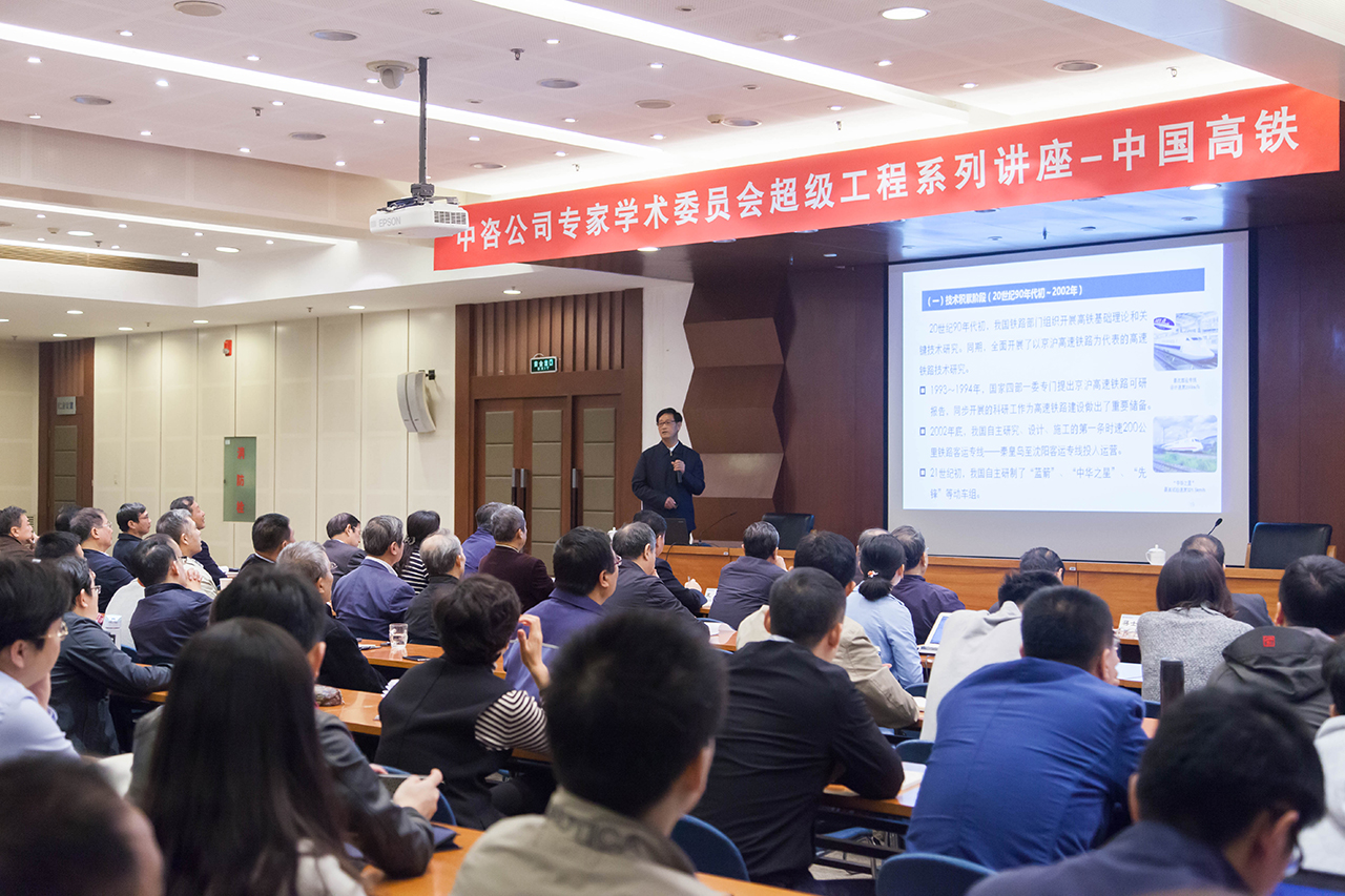 2017年10月16日上午,公司專家學術委員會舉辦第三期中國超級工程系列講座,邀請原鐵道部副部長盧春房作了題為《中國高速鐵路創新與發展》的學術講座,并進行了現場互動交流。 公司領導、專家學術委員會領導、部分資深專家和交通、高技術專家組專家、公司各部門和所屬企業職工200余人參加。