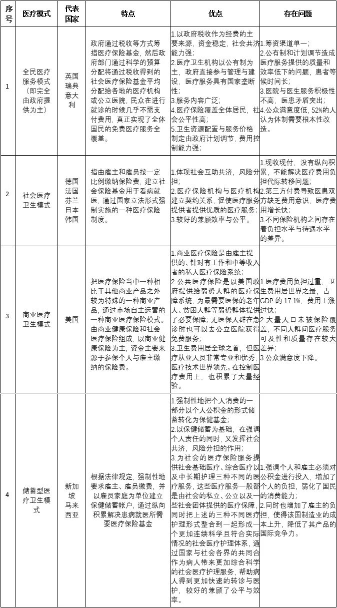 摘要:通過對當前世界醫療衛生主流模式和我國醫療衛生模式的比較分析,研究提出構建具有中國特色社會主義新型醫療衛生體制的若干建議,以期對世界廣大發展中國家提供良好示范,對助力構建健康中國和人類衛生健康命運共同體具有重大戰略意義和現實意義。 關鍵詞:新醫改;醫療衛生模式;基本公共醫療 醫療衛生事業是關系億萬人民健康和千家萬戶福祉的重大民生工程。適應人民群眾日益增長的醫療衛生需求,加強中國醫療衛生體制的改革進程(以下簡稱醫改),加快發展和完善我國醫療衛生事業體制,是維護社會公平正義,不斷提高人民群眾身體健康水平,是推動中國社會未來綠色健康發展的前提條件和必然要求。 醫療衛生體制的改革是一個非常復雜的世界性難題,也是我國堅持以人民為中心,向第二個百年目標邁進,由富起來到強起來,實現新時代社會主義健康中國改革的必由之路。通過對當前世界醫療衛生主流模式和我國醫療衛生模式的比較分析,構建有中國特色社會主義新醫療衛生體制,對世界廣大發展中國家提供良好示范,助力構建健康中國和人類衛生健康命運共同體都具有重大的戰略意義和現實意義。 一、世界醫療衛生主流模式 醫療衛生服務屬于公共服務范疇。長期以來,受地緣政治、經濟社會發展水平不同的影響,世界各國政府都在致力于合理配置醫療資源,建立公平與效率相對平衡的醫療體制,但難度較大。依據《醫保改革的經濟學分析》,當前世界醫療衛生主流模式可歸納為三大途徑(完全由政府公共部門提供、完全市場化、政府公共部門與私營部門合作提供),和四大主流模式: (一)全民醫療服務模式 全民醫療服務模式是以英國為代表的由政府提供以社會福利性質為主的公共醫療制度,其中較為典型的國家包括瑞士與意大利等。國家衛生服務體系(National Health System,簡稱為NHS)作為英國醫療衛生體系最為重要的基礎,由社會的基本護理機構、地區醫院和中央醫療服務機構三級醫療服務機構組成。政府通過稅收等方式籌措醫療保險基金,然后通過各地政府部門的預算分配,將由稅收得到的醫療保險基金平均撥付給相關醫療機構或醫院,社會民眾在就診的時候基本不需支付費用,真正實現了全體國民的免費醫療服務全覆蓋。 全民醫療服務模式的優點有:以政府稅收作為經費的主要來源,資金來源穩定,社會共濟能力強;衛生機構以公有制為主,政府直接參與醫療機構的管理與建設,醫療服務具有國家壟斷性;所有醫療服務作為公共品向全民免費提供;醫療保險覆蓋全體居民,社會公平性高;衛生資源配置與服務價格制定由政府計劃調節,費用控制能力強等。同時,也存在籌資渠道單一,公有制和計劃調節造成醫療服務提供的質量和效率低下、患者等候時間長,醫院與醫生服務積極性不高、醫患矛盾突出,公眾滿意度低等問題。 (二)社會醫療保險模式 社會醫療保險模式是以德國為代表的,由雇主和雇員按一定比例繳納保險費,建立社會保險基金用于看病就醫,通過國家立法形式強制實施的一種醫療保險制度。類似國家還有法國、芬蘭、日本等。德國的社會醫療保險是由法定醫療保險和社會的私人醫療保險兩個部分共同構成的,德國民眾能夠自主選擇二種不同的醫療保障;也可以選擇在參加了法定醫療保險的基礎之上,再額外購買社會的私人醫療保險,由此可以更好的享受補充醫療保險帶來的福利和優惠。德國的醫院主要包括由政府出資建立并管理的公立醫院、由政府建立并委托給私人機構經營的私立營利醫院以及由教會和慈善機構建立并管理的私立非營利醫院三種類型。社會醫療保險機構共100多家,以非政府、非營利性質的“疾病基金協會”為主體,參保者可自愿選擇,社會醫療保險制度已經覆蓋了德國90%的人口,商業保險占比僅為9%。 社會醫療保險模式的優點有:體現社會互助共濟,風險分擔;醫療保險機構與醫療機構建立契約關系,促使醫療服務提供者提供優質的醫療服務;較好的兼顧效率與公平。同時,也存在現收現付,沒有縱向積累,不能解決醫療費用負擔代際轉移問題;第三方付費導致醫患雙方缺乏費用意識,醫療費用增長快;不同保險機構之間存在負擔水平與待遇水平差異等問題。 (三)商業醫療保險模式 商業醫療保險模式指的是以美國為主要代表的國家,將社會的醫療保險當作一種相比于其他商品較為特殊的產品,按照市場自主發展進行運營的一種社會醫療保險商業模式。醫院可分為私立營利性、私立非營利性和政府公立三大類型。醫保體系由商業健康保險和社會醫療保險組成,以商業健康保險為主,資金主要來源于參保個人與雇主繳納的保險費,醫療衛生體系以私人為主,醫療服務主要由家庭醫生和各種類型的醫院提供。其中,私立非營利性醫院占全國醫院總數的一半以上,大約有1000多家商業醫療保險公司,覆蓋了美國80%人口。此外,政府為老年、病殘、窮困和失業人口提供公立醫療保障和醫療援助。 商業醫療保險模式的優點有:商業醫療保險是由雇主提供的、針對有工作和中等收入者的私人醫療保險系統;公共醫療保險是以美國政府提供給弱勢人群的醫療保障系統,為最需要醫保的老年人、貧困人群等弱勢群體提供必要保障;無醫保人群在急診時也可以去公立醫院獲得免費服務;衛生費用居全球之首,但醫療從業人員非常專業和優秀,醫