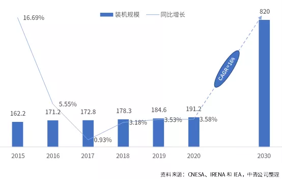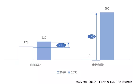 在落實“雙碳”目標的重要背景下,我國能源結構調整與新型電力系統建設勢在必行。隨著源網荷儲一體化深度協調互動,靈活的能源電力系統新模式將日漸顯現。這一進程將催生大量儲能應用場景與裝配需求,儲能將扮演不可替代的關鍵角色。2021年4月國家發展改革委、國家能源局印發的《關于加快推動新型儲能發展的指導意見(征求意見稿)》(以下簡稱《指導意見》)強調儲能是支撐新型電力系統的重要技術和基礎裝備,對推動能源綠色轉型、應對極端事件、保障能源安全、促進能源高質量發展、實現碳達峰碳中和具有重要意義。 01國際、國內儲能建設規模分析及預測 在碳中和背景下,國際國內權威機構、政府機關和中央企業結合當前實際與發展要求,紛紛預測或提出儲能裝機規模的時間表、路線圖??傮w來看,在各國政府大力引導推動下,國際國內儲能市場將高速增長。 (一) 國際儲能建設規模 全球儲能裝機規模未來十年將高速增長。2018~2020年全球儲能新增裝機容量分別為5.5GW、6.3GW、6.5GW,三年年均復合增長率為3.5%。根據國際可再生能源署(IRENA)展望報告《電力儲存與可再生能源:2030年的成本與市場》的基本預測情景中提出,到2030年,抽水蓄能裝機將達到約230GW;另據國際能源署(IEA)《2050凈零排放:全球能源路線圖》報告中預測,電池儲能到2030年裝機規模將達到590GW。2030年,在僅考慮抽水蓄能和電池儲能的情況下[1],儲能總裝機規模將達到約820GW,2020~2030年復合增長率約16%。 圖 1 2015-2020年全球儲能市場累計裝機規模(單位:GW) 電池儲能將成為儲能新增裝機的重要來源和未來儲能的主要裝機支撐。截至2020年底,全球儲能已投運項目累計裝機規模為191GW,其中抽水蓄能裝機規模為172GW,占比90%,電池儲能裝機15GW,抽水蓄能占據絕對主導地位。根據IRENA和IEA預測的抽水蓄能和電池儲能裝機情況,到2030年,抽水蓄能裝機增加至230GW,2020~2030年復合增長率約3%,電池儲能裝機增加至590GW,2020~2030年復合增長率約44%。據此推算,到2030年,抽水蓄能裝機與電池儲能裝機比例約為1:2.5,電池儲能占比超過70%,成為未來儲能重要支撐性裝機來源。 圖 2 2020-2030年全球抽水蓄能和電池儲能累計裝機規模(單位:GW) (二) 國內儲能建設規模 2020年我國新增儲能裝機2.6GW,儲能總裝機規模約34GW。根據CESA數據,2020年我國新增儲能裝機2.6GW,其中抽水蓄能新增裝機容量為1.8GW,占比為69.5%,電池儲能新增裝機容量為0.79MW,占比30.4%。根據《中國電力行業年度發展報告2021》與CNESA數據推測,截至2020年底,我國儲能總裝機規模約34GW,其中抽水蓄能約31GW,電池儲能約3GW。 到2025年,我國儲能裝機規模新增60GW以上,有望達到94GW?!吨笇б庖姟诽岢?,計劃到2025年,新型儲能[2]裝機規模達30GW以上。此外,國家電網透露其在運、在建抽水蓄能裝機規模達到62GW,“十四五”期間,將力爭新增開工20GW以上;南方電網透露,其到2025年將投產5GW抽水蓄能電站。保守估計,“兩網”在“十四五”期間或將新增30GW以上抽水蓄能裝機?!笆奈濉逼陂g,我國新增抽水蓄能和電池儲能裝機或將超過60GW。其中,新增裝機中一半為電池儲能、一半為抽水蓄能,電池儲能年復合增長率約為58%,抽水蓄能年復合增長率為14%,電池儲能增速將遠高于抽水蓄能。 02 儲能發展面臨的挑戰 大力發展儲能已形成良好的政府間共識和技術基礎,但仍面臨重重挑戰。 (一) 建設成本仍高昂,商業模式不清晰 電池儲能雖然相較其他儲能而言具備綜合性成本優勢,但全生命周期度電成本仍然偏高,位于0.5~1.5元/kwh之間,遠高于進入平價時代的風光電價。據專家預測,在目前體制機制下,儲能度電成本需要下降到0.1~0.3元,行業內多數企業才能具備足夠的承擔能力,方可形成在全國大面積鋪開的商業模式。 (二)政策形勢不明朗,資本觀望氛圍濃 儲能對傳統電力系統而言是新生事物,相關部委關于儲能未來科學合理的監管模式尚未達成共識。導致了行業發展在效率考量與安全考慮間徘徊、在政府主導與市場自主間徘徊,傳導至資本市場則體現為投資的忽冷忽熱,不利于形成穩定的預期和增量式資本導入。 (三) 標準體系未建立,安全運營存隱患 目前對適應我國儲能產業發展的安全策略尚未形成頂層共識,電池儲能的安全標準仍未建立,特別是貫穿儲能產品設計、研發、生產、集成等各個流程的系統安全體系尚未形成,導致儲能產品安全性與可靠性檢測與驗證滯后產業發展,部分地區甚至發生嚴重的儲能電站起火爆炸事故,引發公眾恐慌。 (四) 公眾吸引力度小,用戶儲能開發慢 受電動自行車和新能源汽車自燃爆炸等負面消息影響,個人用戶對家用中小型電池儲能產品安全性存在擔憂;同時,峰谷電價特別是民電峰谷電價的彈性不足,無法對大眾用戶形成可預期收益拉動。導致了我國面向大眾的用戶側儲能建設幾乎空白,與部分發達國家的差距不斷拉大。 03 促進儲能發展的若干建設 為更好地發揮政府引導性作用、提高各市場主體的積極性,同時優化儲能布局、降低全社會建設成本,促進我國儲能健康發展,提出以下建議。 (一)積極發展V2G技術,加快儲能與電動汽車的融合發展。 2021、2025年我國電動汽車銷量將分別超過100萬輛、500萬輛,且長期仍將高速增長。按每輛車10kW/50kWh的容量預測,2021、2025年分別新增10GW、50GW的潛在“儲能”裝機。按線性推算,2021~2025五年將累計新增150GW動力電池容量,若20%