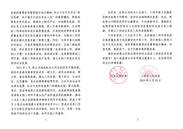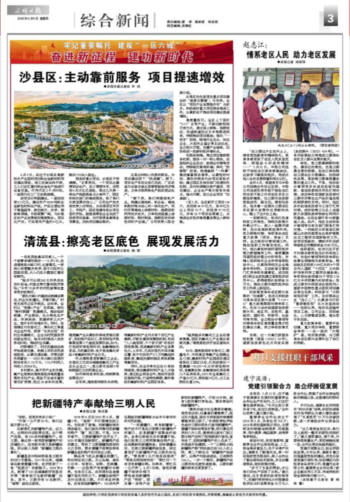 這里有鮮美可口的沙縣小吃 這里有服裝精致考究的梅林戲 這里曾經(jīng)留下習(xí)近平總書(shū)記12次到訪(fǎng)的足跡 這里是:福建三明 習(xí)近平總書(shū)記長(zhǎng)期關(guān)心三明發(fā)展、情系老區(qū)人民,在福建工作期間,先后11次到三明調(diào)研考察,作出了“青山綠水是無(wú)價(jià)之寶”“畫(huà)好山水畫(huà)”“不要忘記老區(qū)”等一系列重要指示。2021年3月,習(xí)近平總書(shū)記再次親臨三明考察指導(dǎo),對(duì)三明老區(qū)蘇區(qū)發(fā)展特別是醫(yī)改、林改、鄉(xiāng)村振興、沙縣小吃等作出新的重要囑托。 中咨公司作為咨詢(xún)服務(wù)“國(guó)家隊(duì)”,深入貫徹落實(shí)習(xí)近平總書(shū)記重要指示精神,承擔(dān)了全國(guó)革命老區(qū)振興發(fā)展的一系列咨詢(xún)服務(wù)任務(wù)。在評(píng)估工作中,中咨公司深入調(diào)研三明市特色亮點(diǎn),報(bào)送關(guān)于三明市統(tǒng)籌推進(jìn)“五位一體”總體布局和協(xié)調(diào)推進(jìn)“四個(gè)全面”戰(zhàn)略布局的調(diào)研報(bào)告。2020年公司領(lǐng)導(dǎo)牽頭,組織開(kāi)展調(diào)查研究,形成上報(bào)政策研究報(bào)告,“三明實(shí)踐”被中宣部樹(shù)為重大典型。 中咨公司與三明“結(jié)緣”已深,去年開(kāi)始互派優(yōu)秀年輕干部掛職交流。2021年4月,趙志江作為中咨公司選派的優(yōu)秀年輕干部赴三明市掛職鍛煉,任三明市發(fā)改委黨組成員、副主任。掛職期間,趙志江始終以合格共產(chǎn)黨員的標(biāo)準(zhǔn)要求自己,積極發(fā)揮模范帶頭作用,從央企到地方,迅速轉(zhuǎn)變工作角色,沉下心撲下身,積極謀劃,履職盡責(zé),勇于擔(dān)當(dāng),高標(biāo)準(zhǔn)、高質(zhì)量完成掛職各項(xiàng)任務(wù)。 三明日?qǐng)?bào)報(bào)道趙志江事跡 激活紅色資源 深挖革命老區(qū)示范區(qū)新機(jī)遇 習(xí)近平總書(shū)記指出,福建是革命老區(qū),黨史事件多、紅色資源多、革命先輩多,開(kāi)展黨史學(xué)習(xí)教育具有獨(dú)特優(yōu)勢(shì)。三明市既是革命老區(qū),也是全國(guó)率先開(kāi)展精神文明建設(shè)的城市之一。如何發(fā)揮自身戰(zhàn)略咨詢(xún)專(zhuān)業(yè)優(yōu)勢(shì),幫助革命老區(qū)換新顏,趙志江先從三明市參與革命老區(qū)高質(zhì)量發(fā)展示范區(qū)建設(shè)入手。 趙志江積極參與革命老區(qū)振興發(fā)展“1+N+X”重大政策跟蹤對(duì)接,先后10余次赴國(guó)家發(fā)改委振興司、地區(qū)司等7個(gè)司局,對(duì)接閩西革命老區(qū)高質(zhì)量發(fā)展示范區(qū)建設(shè)方案,爭(zhēng)取相關(guān)事項(xiàng)。目前該方案已獲國(guó)務(wù)院批復(fù)(國(guó)函﹝2022﹞20號(hào)),國(guó)家發(fā)改委正式印發(fā)實(shí)施(發(fā)改振興﹝2022﹞424號(hào))。 為持續(xù)支持三明老區(qū)蘇區(qū)經(jīng)濟(jì)社會(huì)發(fā)展,開(kāi)展多領(lǐng)域深層次幫扶合作,三明市發(fā)改委、林業(yè)局、交通局三位同志到中咨公司相關(guān)部門(mén)掛職交流,先后承擔(dān)三元區(qū)大宗固廢綜合利用產(chǎn)業(yè)發(fā)展研究、三明市生態(tài)產(chǎn)品價(jià)值實(shí)現(xiàn)機(jī)制研究等課題。 中咨公司與三明市合作,成功舉辦黨史學(xué)習(xí)教育培訓(xùn)班暨“走進(jìn)如畫(huà)三明,感悟初心力量”紅色踐學(xué)活動(dòng),組織老專(zhuān)家、先進(jìn)典型等赴三明療養(yǎng),采購(gòu)三明特色農(nóng)產(chǎn)品,為三明革命老區(qū)高質(zhì)量發(fā)展注入源源動(dòng)力。 中咨公司在三明舉辦黨史學(xué)習(xí)教育專(zhuān)題培訓(xùn)班開(kāi)班現(xiàn)場(chǎng) 繪就生態(tài)畫(huà)卷 賦能三明綠色發(fā)展新藍(lán)圖 習(xí)近平總書(shū)記在武夷山國(guó)家公園智慧管理中心考察時(shí)指出,要堅(jiān)持生態(tài)保護(hù)第一,統(tǒng)籌保護(hù)和發(fā)展,有序推進(jìn)生態(tài)移民,適度發(fā)展生態(tài)旅游,實(shí)現(xiàn)生態(tài)保護(hù)、綠色發(fā)展、民生改善相統(tǒng)一。 趙志江多次赴省發(fā)改委與工信廳匯報(bào)對(duì)接,助推三元區(qū)成功入選大宗固體廢棄物綜合利用示范基地,全國(guó)僅有40家。充分利用在閩工作期間奠定的良好基礎(chǔ),主動(dòng)協(xié)助市發(fā)改委分管領(lǐng)導(dǎo)與有關(guān)部門(mén)匯報(bào),做好大田縣閩江流域山水林田湖草生態(tài)保護(hù)修復(fù)試點(diǎn)工程項(xiàng)目驗(yàn)收。該項(xiàng)目獲得省級(jí)正向激勵(lì)資金2500萬(wàn)元。 此外,趙志江還積極做好體制機(jī)制創(chuàng)新案例編輯報(bào)送工作,案例“將樂(lè)縣打造‘綠水青山’贏得‘金山銀山’”獲得省機(jī)關(guān)黨工委組織的改革創(chuàng)新評(píng)選活動(dòng)“優(yōu)秀獎(jiǎng)”。 發(fā)揮智庫(kù)優(yōu)勢(shì) 探索老區(qū)高質(zhì)量發(fā)展新路徑 在三明考察期間,習(xí)近平總書(shū)記詳細(xì)了解了沙縣小吃發(fā)展現(xiàn)狀和前景。他指出,鄉(xiāng)村要振興,因地制宜選擇富民產(chǎn)業(yè)是關(guān)鍵。 趙志江與專(zhuān)家團(tuán)隊(duì)圍繞三明市產(chǎn)業(yè)升級(jí)、鄉(xiāng)村振興、綠色發(fā)展、民生提升等重點(diǎn)領(lǐng)域深入調(diào)研,謀劃沙縣小吃產(chǎn)業(yè)、綠色經(jīng)濟(jì)、氟新材料產(chǎn)業(yè)