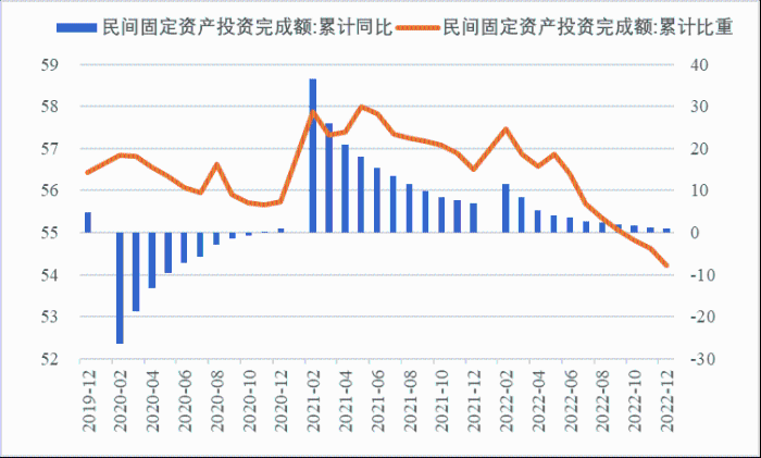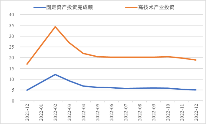 2022年,面對(duì)復(fù)雜嚴(yán)峻的國(guó)際環(huán)境和國(guó)內(nèi)疫情挑戰(zhàn),我國(guó)投資整體表現(xiàn)較強(qiáng)韌性,對(duì)穩(wěn)定經(jīng)濟(jì)基本盤(pán)發(fā)揮了壓艙石作用。基礎(chǔ)設(shè)施和部分制造業(yè)成為穩(wěn)投資的重點(diǎn)領(lǐng)域,中西部地區(qū)投資增長(zhǎng)動(dòng)能強(qiáng)勁。同時(shí),制造業(yè)承壓加劇、房地產(chǎn)投資下行、地方債高壓、社融需求走弱等突出問(wèn)題制約投資持續(xù)穩(wěn)定增長(zhǎng),穩(wěn)投資壓力仍然較大。做好2023年投資促進(jìn)工作,關(guān)鍵是把擴(kuò)大有效投資同優(yōu)化供給結(jié)構(gòu)有機(jī)結(jié)合起來(lái),持續(xù)擴(kuò)大高技術(shù)產(chǎn)業(yè)投資,多舉措穩(wěn)定房地產(chǎn)投資,更好發(fā)揮政府投資的引導(dǎo)作用,充分釋放社會(huì)投資需求潛能。 一、固定資產(chǎn)投資整體運(yùn)行情況 (一)整體投資韌性超出預(yù)期,民間投資呈下行趨勢(shì) 2022年1—12月,我國(guó)固定資產(chǎn)投資(不含農(nóng)戶,下同)572138億元,同比增長(zhǎng)5.1%。一季度投資增速達(dá)到9.3%的年內(nèi)高點(diǎn),上半年、前三季度分別降至6.1%、5.9%,年初投資增速較高的重要原因是2022年專項(xiàng)債部分限額提前下達(dá)等系列政策發(fā)揮效果,之后受國(guó)外地緣政治沖突、國(guó)內(nèi)疫情多點(diǎn)散發(fā)等因素影響,投資增速有所下降,但降幅逐季收窄。一季度、上半年、前三季度、全年固定資產(chǎn)投資增速分別較同期國(guó)內(nèi)生產(chǎn)總值增速高了4.5個(gè)、3.6個(gè)、2.9個(gè)和2.1個(gè)百分點(diǎn),投資成為當(dāng)前穩(wěn)定宏觀經(jīng)濟(jì)大盤(pán)的關(guān)鍵力量。 圖1 全國(guó)固定資產(chǎn)投資增速 (累計(jì)同比,%) 數(shù)據(jù)來(lái)源:國(guó)家統(tǒng)計(jì)局 1—12月,我國(guó)固定資產(chǎn)投資三年平均增速為4.3%,低于2019年同期1.1個(gè)百分點(diǎn),全面恢復(fù)到疫情前水平仍需一定時(shí)間。尤其是民間投資受疫情沖擊較為嚴(yán)重,復(fù)蘇難度較大。一季度、上半年、前三季度、全年民間投資分別同比增長(zhǎng)8.4%、3.5%、2%、0.9%,低于整體投資增速0.9個(gè)、2.6個(gè)、3.9個(gè)、4.2個(gè)百分點(diǎn),與整體投資增速的差距逐季拉大。從占比看,截至12月底民間投資累計(jì)占固定資產(chǎn)投資的比重已降至54.2%,低于2019年同期2.2個(gè)百分點(diǎn)。 圖2 民間投資增速及占比(%) 數(shù)據(jù)來(lái)源:國(guó)家統(tǒng)計(jì)局,Wind數(shù)據(jù)庫(kù) (二)基礎(chǔ)設(shè)施、制造業(yè)投資支撐作用明顯,房地產(chǎn)市場(chǎng)持續(xù)低迷 制造業(yè)投資在外需帶動(dòng)和政策支撐下展現(xiàn)較強(qiáng)韌性,2022年1—12月制造業(yè)投資同比增長(zhǎng)9.1%,比整體投資高4個(gè)百分點(diǎn)。在內(nèi)需受疫情影響明顯收縮的情況下,制造業(yè)投資超預(yù)期增長(zhǎng)很大程度上得益于外需對(duì)出口的拉動(dòng)。我國(guó)全年貨物出口額累計(jì)同比增長(zhǎng)10.5%,裝備制造、消費(fèi)品制造等領(lǐng)域海外訂單持續(xù)旺盛,機(jī)電產(chǎn)品占進(jìn)出口總額的49.1%,汽車出口大幅增長(zhǎng)82.2%。技改投資繼續(xù)發(fā)揮對(duì)制造業(yè)投資的拉動(dòng)作用。1—11月,制造業(yè)企業(yè)技改投資同比增長(zhǎng)9.1%,占全部制造業(yè)投資的比重達(dá)40.9%。 基礎(chǔ)設(shè)施投資在增加政策性開(kāi)發(fā)性金融工具額度、用好專項(xiàng)債等融資支持政策以及各地區(qū)各部門(mén)積極貫徹落實(shí)穩(wěn)增長(zhǎng)系列政策推動(dòng)下,連續(xù)8個(gè)月回升,1—12月同比增長(zhǎng)9.4%,高于全部投資增速4.3個(gè)百分點(diǎn)。其中,水利管理業(yè)投資和公共設(shè)施管理業(yè)投資分別大幅增長(zhǎng)13.6%、10.1%。 表1 1-12月我國(guó)各行業(yè)固定資產(chǎn)投資情況 2022年受需求走弱影響,房地產(chǎn)開(kāi)發(fā)投資增速持續(xù)放緩,一季度僅同比增長(zhǎng)0.7%,二季度開(kāi)始滑落至負(fù)增長(zhǎng)區(qū)間。1—12月我國(guó)房地產(chǎn)開(kāi)發(fā)投資同比下降10%,降幅較前三季度、上半年分別擴(kuò)大2個(gè)、4.6個(gè)百分點(diǎn),跌幅持續(xù)加深,拖累固定資產(chǎn)投資整體增長(zhǎng)。房企土地購(gòu)置費(fèi)、施工面積、新開(kāi)工面積等指標(biāo)均出現(xiàn)持續(xù)大幅下降。1—12月,房地產(chǎn)開(kāi)發(fā)景氣指數(shù)均位于100以下,且自2月以來(lái)持續(xù)走低。 圖3 三大領(lǐng)域固定資產(chǎn)投資增速 (累計(jì)同比,%) 數(shù)據(jù)來(lái)源:國(guó)家統(tǒng)計(jì)局,Wind數(shù)據(jù)庫(kù) 高技術(shù)產(chǎn)業(yè)投資引領(lǐng)作用持續(xù)增強(qiáng)。在投資整體下行壓力加大的情況下,高技術(shù)產(chǎn)業(yè)投資逆勢(shì)而上,穩(wěn)投資引領(lǐng)作用持續(xù)顯現(xiàn)。2022年高技術(shù)產(chǎn)業(yè)投資同比增長(zhǎng)18.9%,比全部投資增速高13.8個(gè)百分點(diǎn)。分類別看,高技術(shù)制造業(yè)投資同比增長(zhǎng)22.2%,比制造業(yè)整體投資高了13.1個(gè)百分點(diǎn),其中電子及通信設(shè)備制造業(yè)投資增長(zhǎng)27.2%,醫(yī)療儀器設(shè)備及儀器儀表制造業(yè)投資增長(zhǎng)27.6%,電子、醫(yī)藥制造業(yè)投資大幅增加;高技術(shù)服務(wù