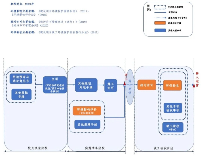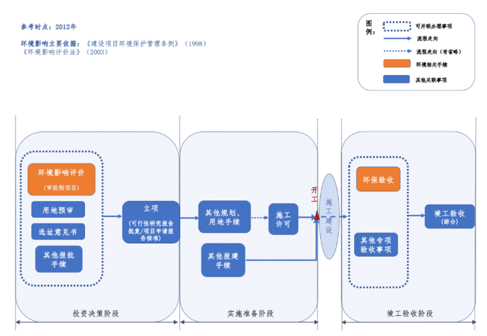 編者按 新中國(guó)成立以來(lái),我國(guó)基礎(chǔ)設(shè)施投資建設(shè)取得了舉世矚目的成就,是國(guó)家經(jīng)濟(jì)社會(huì)發(fā)展的重要支撐,為人民生活水平的提高做出了巨大貢獻(xiàn)。改革開放以來(lái),市場(chǎng)開始發(fā)揮配置資源的基礎(chǔ)性作用,為我國(guó)基礎(chǔ)設(shè)施的發(fā)展煥發(fā)了新的活力。據(jù)統(tǒng)計(jì),我國(guó)基礎(chǔ)設(shè)施資產(chǎn)總規(guī)模在1990年排在全世界約第15位,2000年上升到第7位,2010年躍升為第3位,至2018年已居世界首位。 黨的二十大報(bào)告在回顧過(guò)去五年的工作和新時(shí)代十年的偉大變革中,充分肯定了基礎(chǔ)設(shè)施在經(jīng)濟(jì)社會(huì)中發(fā)揮的重要作用,報(bào)告指出,我國(guó)“建成世界最大的高速鐵路網(wǎng)、高速公路網(wǎng),機(jī)場(chǎng)港口、水利、能源、信息等基礎(chǔ)設(shè)施建設(shè)取得重大成就”。我國(guó)基礎(chǔ)設(shè)施多年來(lái)大規(guī)模的投資建設(shè)和存量資產(chǎn)的高速積累,是黨中央、國(guó)務(wù)院在建立社會(huì)主義市場(chǎng)經(jīng)濟(jì)體制背景下,關(guān)于投融資體制改革部署的重要成果。 項(xiàng)目前期工作手續(xù)的合規(guī)性要求,是基礎(chǔ)設(shè)施能夠發(fā)揮其應(yīng)有價(jià)值的重要前提,也是投融資體制改革關(guān)注的重點(diǎn)內(nèi)容之一。伴隨著政府職能轉(zhuǎn)變、深化“放管服”改革和擴(kuò)大有效投資等重大決策的關(guān)鍵部署,我國(guó)工程建設(shè)項(xiàng)目審批制度不斷優(yōu)化和改革,基礎(chǔ)設(shè)施項(xiàng)目投資前期決策管理經(jīng)歷了復(fù)雜的演變進(jìn)程,其合規(guī)性標(biāo)準(zhǔn)也在與時(shí)俱進(jìn)、不斷完善。當(dāng)前我國(guó)已進(jìn)入基礎(chǔ)設(shè)施存量時(shí)代,存量資產(chǎn)項(xiàng)目前期工作手續(xù)的合規(guī)性是重要的盤活條件之一,部分合規(guī)性問(wèn)題已成為新時(shí)代社會(huì)廣泛關(guān)注的焦點(diǎn)。本項(xiàng)專題研究立足投融資體制和項(xiàng)目審批制度變革的歷史背景,嘗試?yán)迩寤A(chǔ)設(shè)施項(xiàng)目在立項(xiàng)、土地、規(guī)劃、環(huán)境、建設(shè)施工等方面主要前期工作的歷史變革脈絡(luò),梳理不同管理事項(xiàng)之間的邏輯關(guān)聯(lián),從這一視角提供基礎(chǔ)設(shè)施項(xiàng)目前期工作手續(xù)的合規(guī)性認(rèn)識(shí)。本公眾號(hào)將研究報(bào)告的部分成果以系列文章的形式陸續(xù)刊發(fā),研究報(bào)告第一部分為背景與立項(xiàng)篇,第二部分為土地與規(guī)劃篇,第三部分為建設(shè)施工篇,本文是研究報(bào)告的第四部分(環(huán)境篇),供業(yè)界同仁參考。 基礎(chǔ)設(shè)施項(xiàng)目前期工作手續(xù)合規(guī)性研究(Ⅳ) 環(huán)境篇 張雪飛 伍迪 摘要:綠水青山就是金山銀山,基礎(chǔ)設(shè)施項(xiàng)目的建設(shè)可能會(huì)對(duì)環(huán)境產(chǎn)生影響,因此需要格外重視項(xiàng)目在環(huán)境保護(hù)方面的有關(guān)前期工作,具有代表性的手續(xù)事項(xiàng)主要包括環(huán)境影響評(píng)價(jià)、排污許可、環(huán)保專項(xiàng)驗(yàn)收等。建設(shè)項(xiàng)目環(huán)境影響評(píng)價(jià),是對(duì)項(xiàng)目實(shí)施后可能造成的環(huán)境影響進(jìn)行分析、預(yù)測(cè)和評(píng)估,提出預(yù)防或者減輕不良環(huán)境影響的對(duì)策和措施,進(jìn)行跟蹤監(jiān)測(cè)的方法與制度。排污許可,是環(huán)境保護(hù)主管部門依排污單位的申請(qǐng)和承諾,通過(guò)發(fā)放排污許可證法律文書形式,依法依規(guī)規(guī)范和限制排污單位排污行為并明確環(huán)境管理要求,依據(jù)排污許可證對(duì)排污單位實(shí)施監(jiān)管執(zhí)法的環(huán)境管理制度。如果說(shuō)環(huán)境影響評(píng)價(jià)制度是建設(shè)項(xiàng)目的環(huán)境準(zhǔn)入門檻,那么排污許可制度是企事業(yè)單位生產(chǎn)運(yùn)營(yíng)期排污的法律依據(jù)。本文聚焦基礎(chǔ)設(shè)施項(xiàng)目環(huán)境方面的手續(xù),對(duì)手續(xù)主要內(nèi)容和制度演進(jìn)進(jìn)行系統(tǒng)梳理,供業(yè)界參考。 關(guān)鍵詞:基礎(chǔ)設(shè)施;合規(guī)性;環(huán)境影響評(píng)價(jià);排污許可;政策演進(jìn) 當(dāng)前我國(guó)基礎(chǔ)設(shè)施項(xiàng)目在環(huán)境方面前期工作主要包括環(huán)境影響評(píng)價(jià)和排污許可等相關(guān)手續(xù),此外,在工程項(xiàng)目的竣工驗(yàn)收階段,還包括環(huán)保方面的專項(xiàng)驗(yàn)收等。 ——開展建設(shè)項(xiàng)目環(huán)境影響評(píng)價(jià),自上世紀(jì)末《建設(shè)項(xiàng)目環(huán)境保護(hù)管理?xiàng)l例》開始施行以來(lái)就一直都是基礎(chǔ)設(shè)施項(xiàng)目在環(huán)境方面前期手續(xù)的核心工作。環(huán)境影響評(píng)價(jià)是對(duì)規(guī)劃和建設(shè)項(xiàng)目實(shí)施后可能造成的環(huán)境影響進(jìn)行的分析、預(yù)測(cè)和評(píng)估,并提出預(yù)防或者減輕不良環(huán)境影響的對(duì)策和措施,進(jìn)行跟蹤監(jiān)測(cè)。實(shí)行建設(shè)項(xiàng)目環(huán)境影響評(píng)價(jià)制度,最主要目的是為了防止建設(shè)項(xiàng)目產(chǎn)生新的污染、造成生態(tài
