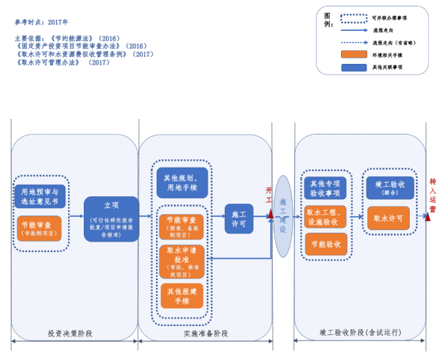 張雪飛 伍迪 摘要:對于特定行業或特殊性質的基礎設施項目,在項目開工前除了需辦理立項、土地、規劃、環境、建設施工等方面的“常規”手續外,還需要根據項目具體情況依法合規辦理節能審查、取水申請批準、海域使用權、外商投資項目安全審查等重要專項手續。部分項目在竣工后、運營前還需辦理取水許可、電信業務經營許可等專項手續。本部分研究重點關注這些特定行業或特殊性質基礎設施項目的重要專項手續,對這些專項手續的主要內容和制度演進進行系統梳理,本文為本部分研究的上篇,重點聚焦節能審查和取水許可等相關內容,供業界參考。 關鍵詞:基礎設施;合規性;節能審查;取水許可;政策演進 2016年,國務院發布《關于印發清理規范投資項目報建審批事項實施方案的通知》(國發〔2016〕29號),是簡化整合投資項目報建手續工作的重要部署。該通知明確,投資項目在可行性研究報告批復或申請報告核準之后、開工建設之前,由相關部門和單位依據法律法規向項目單位作出的行政審批事項由此前的65項報建審批事項歸并減少為42項,精簡后的事項仍然包括發展改革部門負責的節能審查意見、水利部門負責的取水許可、自然資源部門(原海洋部門)負責的海域使用權證書核發、安全部門負責的涉及國家安全事項的建設項目審批等。本文以節能審查、取水許可為例,簡要闡述特定行業領域需要辦理專項手續的歷史沿革及合規性要點。 一、節能審查 (一)內涵與適用范圍 我國固定資產投資項目數量龐大、涉及領域廣,在經濟社會發展中占據重要地位,同時是全社會能源消費增量的主要來源之一。節能審查制度是促進固定資產投資項目科學合理利用能源、提高能源利用效率的源頭性舉措,也是遏制高耗能高排放低水平項目盲目發展的重要抓手。根據2018年最新修訂的《中華人民共和國節約能源法》(以下簡稱《節約能源法》),國家實行固定資產投資項目節能評估和審查制度。不符合強制性節能標準的項目,建設單位不得開工建設;已經建成的,不得投入生產、使用。政府投資項目不符合強制性節能標準的,依法負責項目審批的機關不得批準建設。節能評估,是指根據節能法規、標準,對固定資產投資項目的能源利用是否科學合理進行分析評估,并編制節能評估報告書、節能評估報告表等節能評估文件或填寫節能登記表的行為。節能審查,是指根據節能法律法規、政策標準等,對項目節能評估文件進行審查并形成審查意見,或對節能登記表進行登記備案的行為。節能審查意見是固定資產投資項目開工建設、竣工驗收和運營管理的重要依據。 審批時點要求。根據國家發展改革委最新修訂的《固定資產投資項目節能審查辦法》(2023年6月1日起施行)。政府投資項目,建設單位在報送項目可行性研究報告前,需取得節能審查機關出具的節能審查意見。企業投資項目,建設單位需在開工建設前取得節能審查機關出具的節能審查意見。未按規定進行節能審查,或節能審查未通過的項目,建設單位不得開工建設,已經建成的不得投入生產、使用。 能耗標準和審查機構。固定資產投資項目節能審查由地方節能審查機關負責。(1)年綜合能源消費量(建設地點、主要生產工藝和設備未改變的改建項目按照建成投產后年綜合能源消費增量計算,其他項目按照建成投產后年綜合能源消費量計算,電力折算系數按當量值,下同)10000噸標準煤及以上的固定資產投資項目,其節能審查由省級節能審查機關負責。(2)年綜合能源消費量不滿1000噸標準煤且年電力消費量不滿500萬千瓦時的固定資產投資項目,涉及國家秘密的固定資產投資項目以及用能工藝簡單、節能潛力小的行業的固定資產投資項目,可不單獨編制節能報告。節能審查機關對項目不再單獨進行節能審查,不再出具節能審查意見。(3)其他固定資產投資項目,其節能審查管理權限由省級節能審查機關依據實際情況自行決定。 節能審查要點。建設單位應按照《固定資產投資項目節能審查辦法》等相關要求編制節能報告。節能審查機關受理節能報告后,應委托具備技術能力的機構進行評審,形成評審意見,作為節能審查的重要依據。節能審查機關審查事項包括:項目是否符合節能有關法律法規、標準規范、政策要求;項目用能分析是否客觀準確,方法是否科學,結論是否準確;項目節能措施是否合理可行;項目的能效水平、能源消費等相關數據核算是否準確,是否滿足本地區節能工作管理要求等。 節能審查意見有效期。節能審查意見自印發之日起2年內有效,逾期未開工建設或建成時間超過節能報告中預計建成時間2年以上的項目應重新進行節能審查。 (二)歷史沿革與合規性要點 1997年,《節約能源法》通過立法,規定固定資產投資工程項目的可行性研究報告,應當包括合理用能的專題論證。固定資產投資工程項目的設計和建設,應當遵守合理用能標準和節能設計規范。達不到合理用能標準和節能設計規范要求的項目,依法審批的機關不得批準建設;項目建成后,達不到合理用能標準和節能設計規范要求的,不予驗收。 1. 2006年至2016年 節能審查制度于2006年開始逐步建立。在深入貫徹落實科學發展觀、加快建設節約型社會的政策背景下,2006年,國務院出臺了《關于加強節能工作的決定》,要求建立固定資產投資項目節能評估和審查制