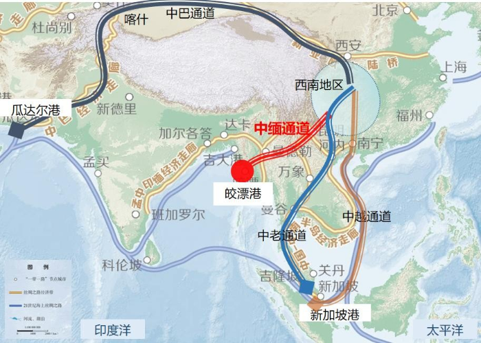 新發展格局下推動西南國際大通道建設的思考 ——以德宏(瑞麗)為戰略支點 代偉 李超 余濤 摘要:在逆全球化涌動、貿易保護盛行背景下,“一帶一路”逐步成為深受歡迎的國際公共產品和國際合作平臺。相較中越、中老、中巴等主要國際大通道,中緬通道(即中國-印度洋的西南國際大通道)是中國聯通環印度洋的運距最短、最經濟、最便捷的戰略通道。本文在比較了中緬通道的德宏、臨滄、保山等出境口岸基礎上,提出以德宏(瑞麗)為戰略支點,打通互聯互通基礎設施網絡、推動雙循環經貿深度合作等建議,加快推動西南國際大通道建設。 一、建設西南國際大通道的時代背景 (一)建立環印度洋國際大通道優勢顯現 近年來,隨著國際局勢的變化,印度洋在全球戰略地位日趨上升。印度洋作為中國的西部鄰海,是中國通向南亞、中東、西亞和歐洲、非洲、大洋洲重要的通道,對中國的經濟可持續發展至關重要。環印度洋地區地跨亞洲、非洲和大洋洲,包含南亞、東南亞、非洲和中東板塊,面積約 2772.3萬平方千米(占世界陸地總面積的20.6%),環印度洋地區合作聯盟共有23個成員國、10個對話伙伴國和2個觀察員國,人口近25.2億(約占世界總人口的35%)。該地區擁有豐富的自然和人力資源、廣闊的市場和便利的交通,發展潛力巨大。 表1 2017-2021 年中國與印度洋沿岸各國貿易額 (單位:億美元) 數據來源:作者根據各年度《中國統計年鑒》整理 印度洋是連結世界貿易航線的樞紐,是世界海上貿易通道最為密集的區域之一,是中國通向南亞、中東、西亞、歐洲、非洲和大洋洲的重要交通、貿易和能源通道,具有重大的戰略意義和經濟意義。在“21世紀海上絲綢之路”倡議背景下,中國與印度洋沿岸國家的貿易與投資合作日益緊密,中國對印度洋的安全需求同步上升。印度洋的安全影響著中國經濟的安全和中國可持續發展的國家大戰略。中國不是印度洋國家,但卻是最接近印度洋的域外大國,一個和平穩定的印度洋國際環境,符合中國的利益。 圖1 中國與環印度洋國家區位示意 (二)西南國際大通道是印度洋國際大通道中主動脈 中國聯通環印度洋地區主要陸海國際大通道包括中越、中老、中巴與中緬等四大通道。具體分布如下: 一是中越通道。該通道起于重慶經廣西北部灣抵達越南、新加坡,輻射東南亞聯通太平洋,項目建設起始于2015年中新互聯互通項目,已實現鐵水、鐵鐵聯運,累計開通國際線路78條,物流網絡已覆蓋119個國家和地區的393個港口。2022年全年通道運輸14.8萬標箱,同比增長32%,貨物種類已從開行之初的50余種拓展至940余種。 二是中老泰通道。該通道由成渝經昆明、老撾、泰國、馬來半島至新加坡貫穿中南半島。自2021年12月3日開通以來,截至2023年4月18 日,中老鐵路累計發送旅客1443萬人次;全線累計完成貨物運量1884萬噸(其中國內段發送貨物1463萬噸,國外段發送貨物421萬噸,運輸跨境貨物370萬噸)。目前國內25個省區市相繼開行了中老鐵路跨境貨物列車,貨物已覆蓋老撾、泰國、緬甸等共建“一帶一路”國家和地區。 三是中巴通道。該通道北起新疆喀什、南至巴基斯坦南部的瓜達爾港,全長約3000千米。包含公路、鐵路、油氣、光纜四位一體的通道,被稱為“一帶一路”的旗艦在建項目。新疆喀什與巴基斯坦實際控制區北部克什米爾接壤。雖然地理位置極其鄰近,但喀什與巴基斯坦之間的通道發展卻十分緩慢。隨著國際政治格局的動蕩,國際恐怖勢力有所抬頭,不斷在印巴制造恐怖事件,嚴重干擾該通道地區正常通行與商貿的發展。 四是中緬通道(西南國際大通道)。該通道起于成渝地區經云南昆明,到達緬甸皎漂港,輻射南亞聯通環印度洋。2022年5月,重慶—臨滄—緬甸國際鐵路班列開通,全程2000千米,運輸時長15天,較傳統物流路徑節約20天,物流成本降低約20%。重慶出口的貨物可以經緬甸出海口聯通歐洲、非洲、中東及南亞各國。2023年4月,西部陸海新通道跨境鐵公聯運班列(重慶—瑞麗—緬甸)開通,待正在建設中的中緬鐵路通道大瑞鐵路保山至瑞麗段通車后,國內鐵路將可直達中緬最大陸路口岸,運輸時間與成本有望進一步大幅降低。 緬甸是中國與東盟連接的重要樞紐,也是連接“21世紀海上絲綢之路”與“絲綢之路經濟帶”的關鍵節點之一。西南國際大通道的建立可以大幅縮短運輸距離和運輸時間。對進一步加強與東盟及RCEP地區的互聯互通,暢通國內國際雙循環具有重要的戰略意義。 圖2 中國聯通印度洋大通道示意 二、新時代建設西南國際大通道具有重要戰略意義 (一)西南國際大通道是聯通環印度洋的關鍵設施 西南國際大通道起于我國的成渝地區,途經昆明經德宏出境后直抵緬甸皎漂港,輻射南亞、印度與非洲等環印度洋板塊。西南國際大通道包括鐵路、公路、水運、航空、管道、能源、光纜等“七位一體”通道和經貿走廊,是跨過馬六甲海峽直接溝通印度洋,輻射歐、非板塊的重要國際公共基礎設施,是聯通環印度洋的關鍵設施。西南國際大通道是中國西南部地區和印度洋沿岸,乃至西亞、非洲最便捷的貿易通道, 通道的開通將給沿線國家和地區發展帶來前所未有的歷史機遇[1]。 (二)西南國際大通道是促進西南地區跨越式發展的重要抓手 我國中西部地區實際利用外資規模增幅長期處于較低水平(1999年至2020年中西部地區實際利用外資規模相加不超