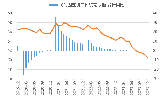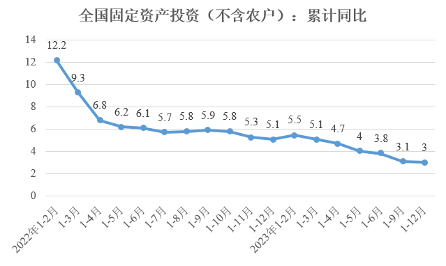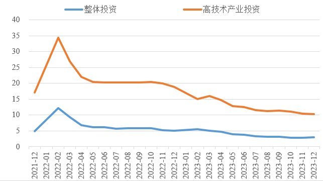 2023年,面對世界經(jīng)濟復蘇乏力、國內(nèi)自然災害頻發(fā)、改革發(fā)展穩(wěn)定任務艱巨等多重挑戰(zhàn),我國經(jīng)濟回升向好,經(jīng)濟轉(zhuǎn)型升級深入推進。投資對優(yōu)化供給結(jié)構(gòu)的關鍵作用更加凸顯,制造業(yè)投資持續(xù)向好,高技術產(chǎn)業(yè)投資占比穩(wěn)步提高。同時,房地產(chǎn)投資仍未見底、民營經(jīng)濟發(fā)展面臨較大壓力、地方政府債務擴展及外溢風險等突出問題制約投資持續(xù)穩(wěn)定增長。做好2024年投資促進工作,需積極擴大有效益的投資,多舉措激發(fā)民間投資內(nèi)生動力,全力穩(wěn)定房地產(chǎn)投資預期,適度增加地方政府專項債券規(guī)模,加大重點領域補短板投資。 一、2023年整體投資增速有所放緩 2023年,我國固定資產(chǎn)投資(不含農(nóng)戶)同比增長3%,增速較上年下降2.1個百分點,較前三季度、上半年、一季度分別下降0.1個、0.8個、2.1個百分點,固定資產(chǎn)投資增速逐季放緩。1—11月,建安工程、設備工器具購置、其他費用分別增長2.1%、6.7%、3.1%,建安工程投資增速明顯低于設備工器具購置投資增速,說明房屋、建筑物和設備裝置安裝等投資的活躍程度有所下降,體現(xiàn)技術水平的設備工器具投入增長加快。 圖1 全國固定資產(chǎn)投資增速(%) 數(shù)據(jù)來源:國家統(tǒng)計局 (一)民間投資動力不足。2023年,新冠疫情防控平穩(wěn)轉(zhuǎn)段,疫情產(chǎn)生的“疤痕效應”仍待消除,需求收縮、供給沖擊、預期轉(zhuǎn)弱三重壓力尚在,民營企業(yè)面臨市場競爭加劇、利潤率下降、轉(zhuǎn)型升級難度增大、融資難融資貴等突出困難。全年民間固定資產(chǎn)投資253544億元,同比下降0.4%,較上年低了1.3個百分點,低于投資整體增速3.4個百分點。截至2023年12月底,我國民間固定資產(chǎn)投資已連續(xù)8個月負增長,民間固定資產(chǎn)投資占比連續(xù)7個月下降,跌至2011年以來的最低點,僅為50.4%,民間投資信心有待進一步提振。 圖2 民間投資增速及占比(%) 數(shù)據(jù)來源:國家統(tǒng)計局,Wind數(shù)據(jù)庫 (二)制造業(yè)投資保持較高韌性,房地產(chǎn)投資持續(xù)低迷。在中央預算內(nèi)投資、地方政府專項債等資金的引導帶動下,基礎設施和制造業(yè)投資支撐作用更加顯著。2023年,中咨公司累計運行項目8421項,其中基礎設施投資與制造業(yè)投資項目占比近8成。我國計劃總投資億元及以上項目投資同比增長9.3%,拉動全部投資增長4.8個百分點,大項目投資帶動作用明顯。2023年,基礎設施投資同比增長8.24%,高于整體投資5.24個百分點,較2019年高了4.91個百分點。其中,鐵路運輸業(yè)投資、水利管理業(yè)投資分別增長25.2%、5.2%。制造業(yè)投資同比增長6.5%,高于整體投資增速3.5個百分點,較2019年高了3.4個百分點。制造業(yè)投資仍保持較高韌性,傳統(tǒng)產(chǎn)業(yè)高端化綠色化智能化轉(zhuǎn)型加快,電氣機械和器材制造業(yè)、汽車制造業(yè)投資分別增長32.2%、19.4%。 表1 1—12月我國各行業(yè)固定資產(chǎn)投資情況 數(shù)據(jù)來源:國家統(tǒng)計局,Wind數(shù)據(jù)庫 2023年,房地產(chǎn)開發(fā)投資增速持續(xù)放緩,房地產(chǎn)開發(fā)投資、住宅開發(fā)投資分別同比下降9.6%、9.3%。房地產(chǎn)開發(fā)投資占固定資產(chǎn)投資完成額的比重降至22%,較上年下降1.2個百分點,為3年以來最低值。房屋施工面積、房屋新開工面積等先行指標均出現(xiàn)明顯下滑,分別同比下降7.2%、20.4%。1—12月,國房景氣指數(shù)均位于100以下,自4月以來持續(xù)走低。 圖3 三大領域固定資產(chǎn)投資增速(累計同比,%) 數(shù)據(jù)來源:國家統(tǒng)計局,Wind數(shù)據(jù)庫 高技術產(chǎn)業(yè)投資引領帶動作用持續(xù)增強,集成電路、高端芯片、儀器儀表設備等領域關鍵核心技術攻關扎實推進,新能源、人工智能、生物醫(yī)藥等新興產(chǎn)業(yè)發(fā)展加快。2023年我國高技術產(chǎn)業(yè)投資增長10.3%,穩(wěn)投資引領作用持續(xù)顯現(xiàn)。高技術制造業(yè)投資比上年增長9.9%,增速比制造業(yè)投資高3.4個百分點。其中,航空、航天器及設備制造業(yè),計算機及辦公設備制造業(yè),電子及通信設備制造業(yè)投資分別增長18.4%、14.5%、11.1%。高技術服務業(yè)投資比上年增長11.4%,增速比服務業(yè)投資高11個百分點。其中,科技成果轉(zhuǎn)化服務業(yè)、電子商務服務業(yè)投資分別增長31.8%、29.2%。高技術產(chǎn)業(yè)引資能力不斷增強,1—11月高技術產(chǎn)業(yè)引資3866.5億元人民幣,占全國實際使用外資總額的37.2%,較2022年全年提升1.1個百分點。 圖4 高技術產(chǎn)業(yè)投資增速對比整體投資增速(累計同比,%) 數(shù)據(jù)來源:國家統(tǒng)計局,Wind數(shù)據(jù)庫 (三)東部地區(qū)投資保持較快增長,東北地區(qū)投資延續(xù)負增長。今年以來,中咨公司承接31個省市委托的項目中,東部、中部、西部和東北地區(qū)占比分別為43%、16%、36%、5%。2023年,我國東部地區(qū)投資同比增長4.4%,較全國水平高了1.4個百分點;中部、西部地區(qū)投資增速由負轉(zhuǎn)正,分別同比增長0.3%、0.1%;東北地區(qū)投資同比下降1.8%,降幅較前三季度有所收窄。 圖5 分地區(qū)固定資產(chǎn)投資增速(累計同比,%) 數(shù)據(jù)來源:國家統(tǒng)計局,Wind數(shù)據(jù)庫 2023年1—11月,