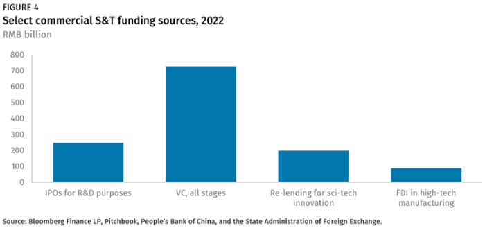摘要 2023年12月15日,美國商業(yè)咨詢機(jī)構(gòu)榮鼎集團(tuán)發(fā)布其中國項(xiàng)目團(tuán)隊(duì)的副總監(jiān)、聯(lián)席董事卡米爾·布勒諾瓦(Camille Boullenois)等人撰寫的《經(jīng)濟(jì)放緩下中國科技支出正在分散》的研究報(bào)告,指出中國經(jīng)濟(jì)增長放緩可能會抑制創(chuàng)新研發(fā)投入。報(bào)告評估了中國經(jīng)濟(jì)增長放緩和財(cái)政環(huán)境收緊對每個資金來源的影響,認(rèn)為資源稀缺可能會迫使政府更具戰(zhàn)略性地將資金引導(dǎo)到與國家安全相關(guān)的技術(shù)和公司這一更狹窄的核心。報(bào)告認(rèn)為,總體上較低的科技支出并不一定會阻礙中國在這些戰(zhàn)略領(lǐng)域發(fā)展成為全球領(lǐng)導(dǎo)者的能力。報(bào)告也警示,經(jīng)濟(jì)增長放緩或減緩中國發(fā)展一個全面的創(chuàng)新生態(tài)系統(tǒng),進(jìn)而影響技術(shù)之間的溢出效應(yīng),放緩下一代創(chuàng)新的出現(xiàn),并影響到人才和資源的有效調(diào)動。 近年來,以七國集團(tuán)(G7)國家為代表的美西方國家加強(qiáng)貿(mào)易和投資管制,以遏制中國高科技部門的增長,并限制中國產(chǎn)業(yè)政策對其行業(yè)的溢出效應(yīng)。面對日益增長的地緣政治逆風(fēng),中國政府加倍努力,成為自立自強(qiáng)的全球科技強(qiáng)國。 但中國經(jīng)濟(jì)增長放緩可能會抑制創(chuàng)新強(qiáng)國進(jìn)程。歷史表明,經(jīng)濟(jì)增長放緩?fù)鶗?chuàng)新資金和能力產(chǎn)生負(fù)面影響。報(bào)告詳細(xì)介紹了中國創(chuàng)新生態(tài)系統(tǒng)的主要資金來源,并評估了中國經(jīng)濟(jì)增長放緩和財(cái)政環(huán)境收緊對每個資金來源的影響。資源稀缺可能會迫使政府更具戰(zhàn)略性地將資金引導(dǎo)到與國家安全相關(guān)的技術(shù)和公司這一更狹窄的核心。總體上較低的科技支出并不一定會阻礙中國在這些戰(zhàn)略領(lǐng)域發(fā)展成為全球領(lǐng)導(dǎo)者的能力。然而,它可能會減緩中國發(fā)展一個全面的創(chuàng)新生態(tài)系統(tǒng),這種生態(tài)系統(tǒng)可以促進(jìn)技術(shù)之間的溢出效應(yīng),促進(jìn)下一代創(chuàng)新的出現(xiàn),并保持人才和資源的調(diào)動。 PART/1 中國經(jīng)濟(jì)放緩對科技資金來源的影響 與世界其他地方一樣,中國創(chuàng)新生態(tài)系統(tǒng)的資金來自各種商業(yè)和公共來源,并流向廣泛的公共和私人科技行為者。然而,與其他大型和技術(shù)發(fā)達(dá)的經(jīng)濟(jì)體相比,政府相關(guān)來源在中國發(fā)揮著主導(dǎo)作用,約占流入中國科技生態(tài)系統(tǒng)的所有資金的60%(見圖1)。 由于政府相關(guān)資金承擔(dān)了中國科技體系的大部分融資,因此地方財(cái)政狀況會帶來很高的破壞風(fēng)險(xiǎn)。2022年,地方政府約占政府科技支出總額的三分之二。科技的其他資金來源,包括從再投資利潤到股權(quán)和貸款的商業(yè)融資渠道,也將面臨經(jīng)濟(jì)增長放緩的壓力。 PART/2 對大學(xué)和研究機(jī)構(gòu)的資助 中國的大學(xué)和研發(fā)機(jī)構(gòu)最直接地受到中國經(jīng)濟(jì)放緩和地方政府財(cái)政困境的影響。這些機(jī)構(gòu)在中國的創(chuàng)新生態(tài)系統(tǒng)中發(fā)揮著至關(guān)重要的作用,占中國基礎(chǔ)研究支出的85%,并且主要由政府資助支持。2022年,他們獲得了約438億元人民幣(65億美元)的研發(fā)活動預(yù)算支出,約占其整體科技預(yù)算的70%,比2018年增長了34%。支出主要由地方政府承擔(dān),而且越來越多地由地方政府承擔(dān),2018 年地方政府占政府對大學(xué)和研究機(jī)構(gòu)支持的 68%。 未來幾年,地方政府的預(yù)算資金可能會面臨越來越大的壓力。地方政府收入占GDP的比重一直在下降,從2015年的12%左右下降到2022年的9%。稅收收入占地方政府一般預(yù)算的70%,2020年和2022年的稅收收入絕對值也有所下降,原因是新冠肺炎疫情大流行期間給予了稅收減免,以及企業(yè)部門放緩導(dǎo)致企業(yè)所得稅和增值稅收入減少。除此之外,許多地方政府在疫情前和疫情期間都面臨著越來越沉重的債務(wù)償還負(fù)擔(dān)。 盡管收入下降,但地方政府仍被要求在一系列政策優(yōu)先事項(xiàng)上增加支出,尤其是在人口老齡化加速退休并需要更多公共醫(yī)療和社會系統(tǒng)的情況下。根據(jù)官方預(yù)算,這已經(jīng)影響了政府對科技的直接支出,在過去十年中,科技支出的增長速度慢于衛(wèi)生和社會保障支出。 科技支出能力的下降將使中國3000所省級大學(xué)以及地方政府資助的研究所、實(shí)驗(yàn)室和科研項(xiàng)目面臨風(fēng)險(xiǎn)。地方政府財(cái)政緊縮對各省的影響不盡相同。中國約有一半的地方政府直接科技撥款來自五個發(fā)達(dá)省份,這些省份的財(cái)政通常較為穩(wěn)定。但即使是這些省份,也難免受到財(cái)政緊縮影響。2022年,這些省份的平均一般預(yù)算收入下降了4%,而所有省份的平均降幅為8%。 PART/3 政府資助鼓勵企業(yè)研發(fā) 過去十年間,政府還通過補(bǔ)貼和稅收優(yōu)惠,以及股權(quán)融資和高科技基礎(chǔ)設(shè)施等間接手段,加大了對企業(yè)研發(fā)的支持力度(圖 2)。所有資金來源都實(shí)現(xiàn)了快速增長,但僅稅收返還一項(xiàng)在2018