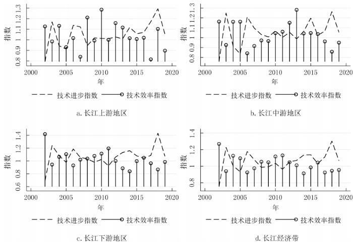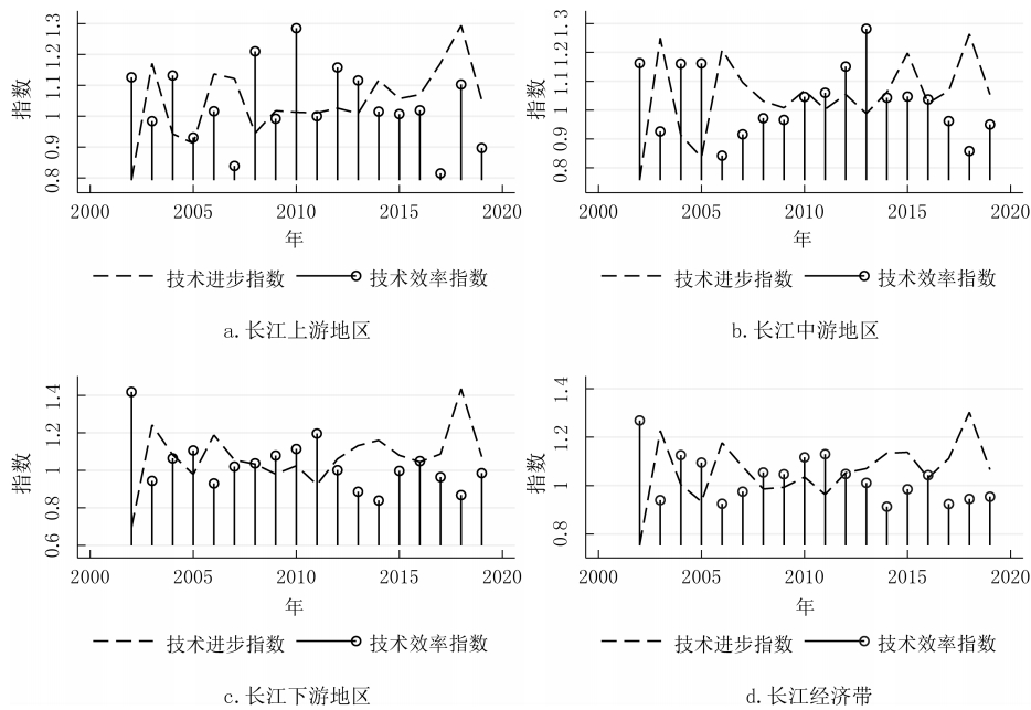 摘要:正確認識和研判長江經(jīng)濟帶科技創(chuàng)新效率的變化特征有助于更好地發(fā)揮科技創(chuàng)新對經(jīng)濟高質(zhì)量發(fā)展的支撐作用。基于2002-2019年長江經(jīng)濟帶沿線11省份的面板數(shù)據(jù),利用GS-SBM模型測度了長江經(jīng)濟帶的科技創(chuàng)新效率,分別使用Malmquist指數(shù)、Dagum基尼系數(shù)以及 Sigma收斂、Beta絕對(條件)收斂考察了長江經(jīng)濟帶科技創(chuàng)新效率的演變、空間差距和收斂性。研究發(fā)現(xiàn):長江經(jīng)濟帶及其上、中、下游地區(qū)科技創(chuàng)新效率整體上而言保持提升趨勢,且存在較大空間差距,超變密度對總體差距的貢獻最大;長江經(jīng)濟帶及其上、中、下游地區(qū)科技創(chuàng)新效率幾乎不存在Sigma收斂和Beta絕對(條件)收斂;長江經(jīng)濟帶發(fā)展戰(zhàn)略實施之后,科技創(chuàng)新效率提高得更加明顯,并從技術(shù)進步與技術(shù)效率的雙重驅(qū)動轉(zhuǎn)變?yōu)楦嗟匾揽考夹g(shù)進步,科技創(chuàng)新效率的擴散狀態(tài)更強。基于此,研究認為要科學辯證地看待區(qū)域科技創(chuàng)新效率的差距,發(fā)揮長江經(jīng)濟帶發(fā)展戰(zhàn)略和科教興國戰(zhàn)略在提升和平衡科技創(chuàng)新效率中的積極作用。 關(guān)鍵詞:長江經(jīng)濟帶;科技創(chuàng)新效率;時空格局;收斂性 科技創(chuàng)新是長江經(jīng)濟帶建設現(xiàn)代經(jīng)濟體系、實現(xiàn)高質(zhì)量發(fā)展的戰(zhàn)略支撐,是推動中國式現(xiàn)代化的第一力量。經(jīng)過多年的對外開放,長江經(jīng)濟帶已經(jīng)融入了全球分工體系,但是大量本土企業(yè)被鎖定在產(chǎn)業(yè)鏈或者產(chǎn)品價值鏈的中低端,必須依靠科技創(chuàng)新才能實現(xiàn)在全球價值鏈上的攀升。同時,雖然長江經(jīng)濟帶是我國重要的現(xiàn)代工業(yè)集聚地,工業(yè)基礎扎實、規(guī)模龐大,但是關(guān)鍵核心技術(shù)仍然缺乏,尤其是在以美國為首的西方國家對華遏制和挑戰(zhàn)的情況下,需要以科技創(chuàng)新來解決“卡脖子”問題,加快實現(xiàn)高水平科技自立自強。此外,為了加快經(jīng)濟增長,長江經(jīng)濟帶沿線多個省市推進工業(yè)化和城鎮(zhèn)化,忽略了人與自然的和諧共生,導致長江沿線部分地區(qū)環(huán)境污染問題突出,生態(tài)功能退化,碳排放持續(xù)增加。基于此,無論是貫徹落實習近平總書記“共抓大保護、不搞大開發(fā)”的指示精神,還是如期或者率先實現(xiàn)碳達峰碳中和目標,都要求長江經(jīng)濟帶沿線省市轉(zhuǎn)變發(fā)展模式,走生態(tài)優(yōu)先、綠色低碳發(fā)展之路,發(fā)揮科技創(chuàng)新在經(jīng)濟綠色轉(zhuǎn)型中的支撐作用。 由于科技創(chuàng)新本質(zhì)上來講是一種知識生產(chǎn)過程,所以就存在科技創(chuàng)新成果的產(chǎn)出與科技創(chuàng)新資源和要素的投入比問題,即科技創(chuàng)新效率的高低,這種高低變化分別反映在時間和空間上差距:一是在某一區(qū)域內(nèi)科技創(chuàng)新資源和要素投入的持續(xù)增長,并沒有帶來相應的科技創(chuàng)新產(chǎn)出數(shù)量增長或者質(zhì)量的提升;二是將同樣的科技創(chuàng)新資源和要素投入到不同區(qū)域,其科技創(chuàng)新產(chǎn)出數(shù)量或者質(zhì)量顯著不同。這兩個維度分別刻畫了區(qū)域內(nèi)與區(qū)域間科技創(chuàng)新效率的差別,不僅影響了科技創(chuàng)新資源和要素的配置,而且也影響了科技創(chuàng)新對經(jīng)濟發(fā)展的貢獻程度,成為區(qū)域發(fā)展不平衡的底層因素之一,給區(qū)域協(xié)調(diào)發(fā)展帶來了較大的挑戰(zhàn)。除此之外,我國依然是世界上最大的發(fā)展中國家,科技創(chuàng)新資源較歐美發(fā)達國家而言則相對稀缺,這就需要通過提高科技創(chuàng)新效率來實現(xiàn)科技創(chuàng)新資源的最大化利用。 為了更加充分和有效地利用長江經(jīng)濟帶科技創(chuàng)新資源,促進長江經(jīng)濟帶經(jīng)濟高質(zhì)量發(fā)展,就必須正視科技創(chuàng)新效率在時間和空間上的演變,科學認識科技創(chuàng)新效率向高水平收斂的機制,因此,不僅要考察長江經(jīng)濟帶科技創(chuàng)新效率的動態(tài)變化規(guī)律,還需要充分考慮科技創(chuàng)新效率的區(qū)域不平衡問題,即其上、中、下游地區(qū)之間以及各自內(nèi)部科技創(chuàng)新效率的差距變化。本文首先基于數(shù)據(jù)包絡方法測度了長江經(jīng)濟帶及其上、中、下游地區(qū)的科技創(chuàng)新效率,分解了導致科技創(chuàng)新效率變化的驅(qū)動因素,然后利用dagum基尼系數(shù)考察了長江經(jīng)濟帶及其上、中、下游地區(qū)的科技創(chuàng)新效率的空間差距及其形成來源,接著分別采用Sigma收斂和Bate收斂來檢驗了長江經(jīng)濟帶及其上、中、下游地區(qū)的科技創(chuàng)新效率的收斂性,最后給出了相關(guān)對策啟示。 一、文獻綜述 多年來,我國一直高度重視科技創(chuàng)新在國民經(jīng)濟發(fā)展中的重要作用,將推動科技創(chuàng)新做為黨治國理政的核心內(nèi)容之一。在中國共產(chǎn)黨第二十次全國代表大會報告提出“必須堅持科技是第一生產(chǎn)力、人才是第一資源、創(chuàng)新是第一動力”。鑒于此,有學者圍繞我國科技創(chuàng)新問題從多個角度展開