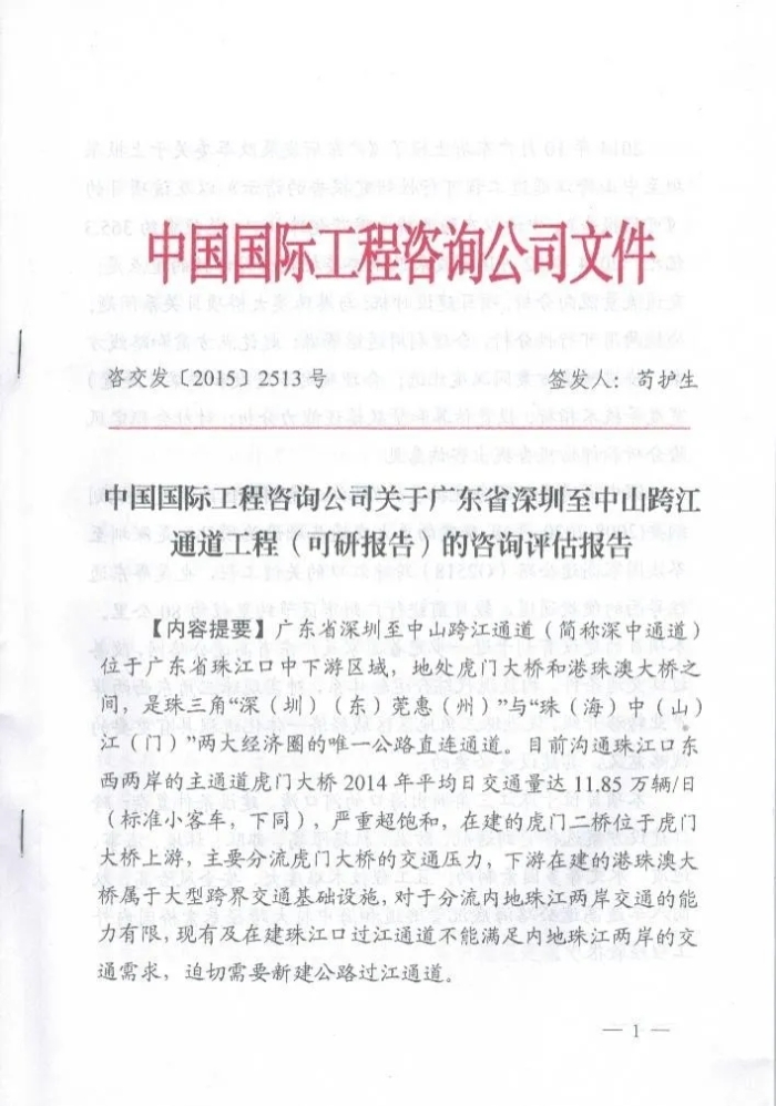 七年磨一劍,鏖戰(zhàn)珠江口。 飛架伶仃洋,天塹變通途。 6月30日,舉世矚目的國家重大工程深中通道正式建成通車。習(xí)近平總書記致信祝賀,并向參與規(guī)劃建設(shè)的全體同志致以誠摯問候。賀信中寫道:“深中通道是繼港珠澳大橋后粵港澳大灣區(qū)建成的又一超大型交通工程,攻克了多項(xiàng)世界級技術(shù)難題,創(chuàng)造了多項(xiàng)世界紀(jì)錄。全體參與者用辛勤付出、堅(jiān)強(qiáng)毅力,高質(zhì)量完成了工程任務(wù)。這充分說明,中國式現(xiàn)代化是干出來的,偉大事業(yè)都成于實(shí)干!” 全長約24公里,總投資446億元的深中通道在環(huán)珠江口“A”字形交通主骨架上挺起關(guān)鍵一“橫”,成為全球首個(gè)集“橋、島、隧、水下互通”為一體的跨海集群工程。通車后,深圳至中山的車程從2小時(shí)左右縮短至30分鐘。自此,深中兩地“雙向奔赴”,攜手進(jìn)入“一小時(shí)經(jīng)濟(jì)圈”,廣佛肇、深莞惠、珠中江三大珠三角都市圈聯(lián)結(jié)更加密切,推動(dòng)了粵港澳大灣區(qū)高質(zhì)量發(fā)展加速駛?cè)肟燔嚨馈?/span> 世界最大跨徑(1666米)全離岸海中鋼箱梁懸索橋、世界最高通航凈空高度(76.5米)、世界最大海中錨碇(100萬噸)、世界橋梁最高顫振臨界風(fēng)速(88米/秒)……深中通道創(chuàng)造了十多項(xiàng)世界紀(jì)錄,形成了“鋼殼-混凝土沉管隧道設(shè)計(jì)方法”等10項(xiàng)世界領(lǐng)先技術(shù)。獲得發(fā)明專利200余項(xiàng)、行業(yè)協(xié)會獎(jiǎng)項(xiàng)數(shù)十項(xiàng),并屢獲國際贊譽(yù):2024年4月,深中大橋榮獲國際橋梁大會“喬治·理查德森獎(jiǎng)”,深中隧道入選“全球隧道與地下工程領(lǐng)域50項(xiàng)標(biāo)志性工程”。 這樣一項(xiàng)屢創(chuàng)紀(jì)錄、成于實(shí)干的超級工程背后,凝結(jié)著上百家參建單位、上萬名建設(shè)者的汗水和智慧,中國國際工程咨詢有限公司(以下簡稱“中咨公司”)便是其中一員。作為國家高端智庫和國內(nèi)規(guī)模最大的綜合性工程咨詢機(jī)構(gòu),中咨公司牢記“服務(wù)國家 貢獻(xiàn)社會”的初心使命,始終胸懷“國之大者”,助建“國之重器”,全程參與深中通道的建設(shè)論證,中咨人攻堅(jiān)克難,勇于擔(dān)當(dāng),敢于創(chuàng)新,用實(shí)際行動(dòng)詮釋了“公正、科學(xué)、可靠、敢言、多謀、慎斷”的中咨精神,為工程保駕護(hù)航,作出了重要貢獻(xiàn)。 使命召喚,責(zé)無旁貸 深中通道建設(shè)勢在必行 十年彈指一揮間,不負(fù)韶華不負(fù)己。2014年12月,受國家發(fā)展改革委委托,中咨公司開展《深圳至中山跨江通道可行性研究報(bào)告》(以下簡稱《可研報(bào)告》)的咨詢評估工作,評估重點(diǎn)包含以下方面:交通流量流向分析;項(xiàng)目建設(shè)時(shí)機(jī);與港珠澳大橋項(xiàng)目關(guān)系問題;公鐵兩用可行性分析,合理利用通道資源;起訖點(diǎn)方案和路線方案;橋梁隧道方案同深度比選;合理確定車道數(shù)和橋梁(隧道)寬度等技術(shù)指標(biāo);投資估算和貸款償還能力分析;對社會穩(wěn)定風(fēng)險(xiǎn)分析和評估報(bào)告提出咨詢意見。 使命召喚,責(zé)無旁貸。中咨公司高度重視深中通道評估工作,迅速成立組建專班,由時(shí)任中咨公司副總經(jīng)理茍護(hù)生,原交通業(yè)務(wù)部主任佘湘耘,時(shí)任交通業(yè)務(wù)部主任助理姜青春,公路處處長(項(xiàng)目經(jīng)理)宋小云、公路處申培華、徐進(jìn)、王春苗等,并邀請涵蓋隧道、橋梁、水運(yùn)、鐵路、公路、投資估算等方面專家,共同組成項(xiàng)目組,全力以赴做好評估論證工作。 2014年12月,中咨公司接受委托開展評估論證工作。 2015年1月,中咨公司組織由工程院士、設(shè)計(jì)等組成的評估組,在深圳召開現(xiàn)場咨詢評估會,評估認(rèn)為本項(xiàng)目的通航安全影響行業(yè)主管部門尚未批復(fù),現(xiàn)有建設(shè)方案存在很大的不確定性,建議待有關(guān)通航等問題明確后,確定工程方案。 2015年8月,交通運(yùn)輸部出具《關(guān)于深圳至中山跨江通道項(xiàng)目航道條件與通航安全影響評價(jià)的審核意見》(交水函〔2015〕590號),明確各航道通航凈空和相關(guān)技術(shù)要求。 2015年10月,《可研報(bào)告》編制單位根據(jù)中咨公司咨詢評估會意見和交通運(yùn)輸部關(guān)于通航影響的批復(fù)意見,對交通量預(yù)測、通航審批執(zhí)行情況、工程實(shí)施范圍、投資估算及經(jīng)濟(jì)評價(jià)等內(nèi)容進(jìn)行了進(jìn)一步修改完善。 2015年11月,經(jīng)過評估組研究并進(jìn)行再次評估后,中咨公司關(guān)于廣東省深圳至中山跨江通道工程(可研報(bào)告)的咨詢評估報(bào)告正式提交國家發(fā)展改革委。 至此,歷時(shí)近一年的深中通道咨詢評估工作順利完成,評估組從建設(shè)必要性與建設(shè)時(shí)機(jī)、交通量預(yù)測、與港珠澳大橋的關(guān)系、技術(shù)標(biāo)準(zhǔn)及通航標(biāo)準(zhǔn)、建設(shè)條件、建設(shè)方案、建設(shè)規(guī)模及建設(shè)工期、建設(shè)用地和用海、環(huán)境和生態(tài)影響分析、投資估算和資金籌措、經(jīng)濟(jì)評價(jià)、節(jié)能評價(jià)、社會評價(jià)、社會穩(wěn)定風(fēng)險(xiǎn)分析與評估、風(fēng)險(xiǎn)評