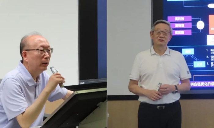浙商研究會執行會長、財經作家胡宏偉,浙江大學信息與電子工程學院教授張旭光授課